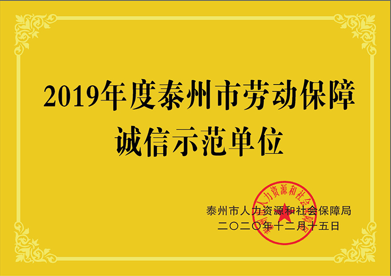 泰州市勞動(dòng)勞動(dòng)保障誠信示范單位