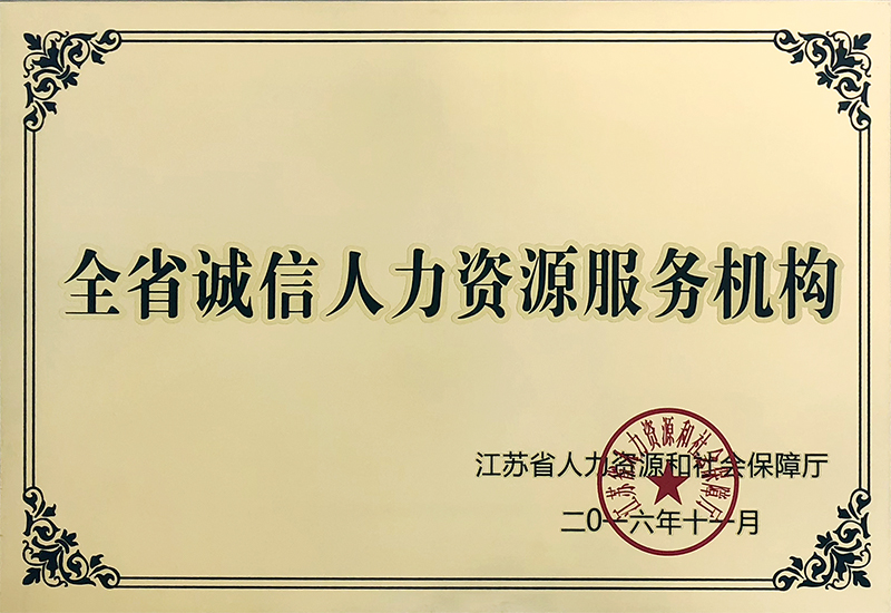 “江蘇省誠信人力資源服務(wù)機(jī)構(gòu)”、“江蘇省工人先鋒號(hào)”等多項(xiàng)榮譽(yù)稱號(hào)。